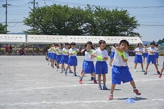 吹上小学校の運動会団体種目は、低学年は玉入れ、中学年は綱引き、高学年はポールリレーで赤白勝負しています。それぞれの種目の様子を写真で紹介します。
