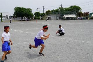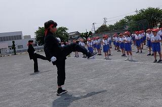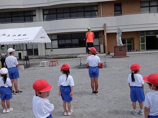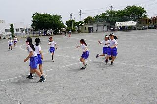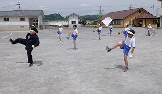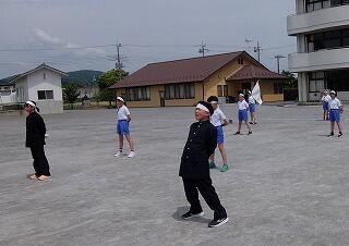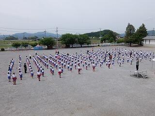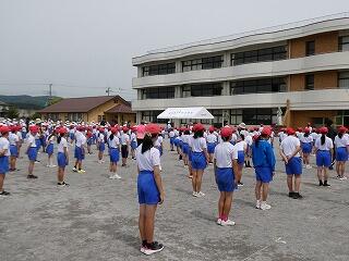 本日から運動会全体練習が始まりました。全校生が開会式の隊形に集合しました。最初に練習始まりのあたって校長先生から運動会に臨む態度についてのお話がありました。今日の練習は、「きをつけ」「礼」「前へならえ」「回れ右」等の基本的な集団行動について練習しました。