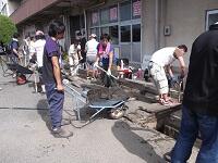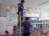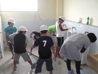 朝は、通学路の点検を兼ねて親子で歩いて登校です。その後、プール清掃、教室の窓ふき、トイレ掃除、側溝清掃、蛍光灯掃除と、分担して親子で作業していただきました。お陰様で学校が見違えるようにきれいになり、気持ちよく2学期が始められました。たいへんお世話になりました。