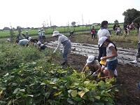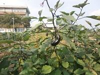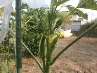 さつまいも、おおきくなったかな? 空に向かっておくらも元気です。