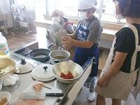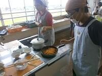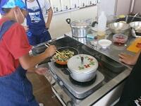 栄養士の先生から、露地栽培の野菜のよさや栄養についてお話をいただき、いよいよ実習です。モロヘイヤを料理するのは初めての子がほとんどでしたが、おいしいスープができました。ナポリタンもなかなかのできばえで、校長先生から「おいしくてレストランのもののようです。」とお褒めのことばをいただき、子どもたちも大満足でした。