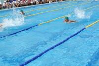 代表の6年生が作文を読み、水泳交歓会に出た児童が、模範水泳を行いました。上級生のすばらしい泳ぎに、子どもたちから大きな拍手が起こりました。自分の水泳のめあてを振り返り、成長を確認すると共に、無事に学習ができたことに感謝する会となりました。運動委員会児童の司会進行も、堂々としていて、大変立派でした。
