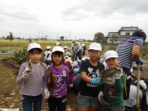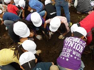 さつまいもの頭が見えると、さらに一生懸命土を掘り、さつまいもが取れると、大歓声があがりました。