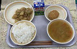 ごはん・焼き鳥風煮・こぶづけ・じゃがいものみそ汁・牛乳