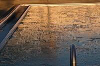 学校の大・小プールの水面も、とうとう、凍結してしまいました。