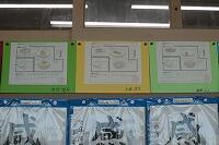 各教室や昇降口には、児童が描いた給食に関する絵画や標語、6年生が考えた給食メニューを掲示しています。
