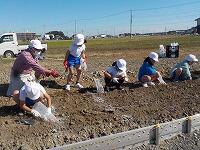 2校時、生活科の授業で野中町にチューリップの球根を植えに行きました。