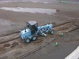 6年生が泥が混じり堅くなった砂を掘り出し近くに積み上げました。そして、新しい川砂を大型ダンプで搬入しました。