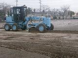 校庭の復旧工事が開始されました。大型の工事車両が入って表面の土を削ることから始まりました。