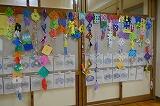1年生の教室には、手作りの七夕飾りが飾られています。