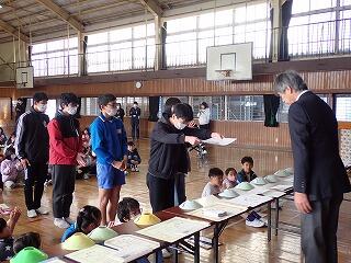 陸上交歓会のリレー優勝の表彰 校内持久走大会の表彰