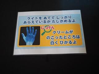 保健委員会の児童が手洗いチェックを実施しました。よく手洗いができているか確認しています