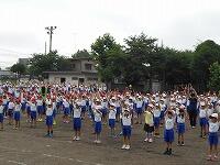 各学年とも徒競走、表現(ダンス)の2種目でしたが、短い練習時間の中とても濃 い練習時間を過ごしていたと思います。一人一人の児童が体育的な動きはもちろん、集団 行動を通した規律や場に応じた適切な行動、友達と協力することなどたくさんのことを学んでくれたと思います。