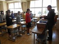 毎朝、子供たちの安全な登校を見守ってくださっている交通指導員さんに感謝の会をしました。本来なら、児童集会という形で全児童で催す会ですが、コロナ禍で集会という形がとれないため代表して運営委員会の児童のみで行いました。