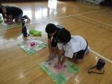 一人一つ「あっぱくん」を使って、心肺蘇生の仕方やAEDの使い方を学びました。