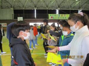 6年生へプレゼント贈呈です。心のこもったメッセージカード、喜んでくれたようです。