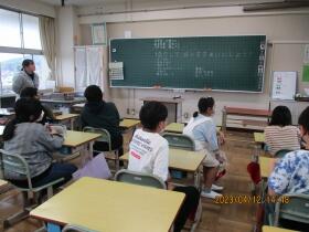 國學院短大生の5名が小学校の教育活動について学ぶため、五小に来ました。