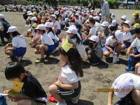 校長先生から、楽しんでプール活動を行うこと、友達と仲良く安全に気を付けて体を鍛えることなどの話がありました。