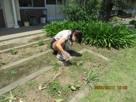 むつみ会(薗部町2丁目自治会)の方々が、校舎前の花壇を整備してくださいました。