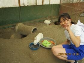 校庭南側にある動物ランドでウサギとカメを飼育しています。