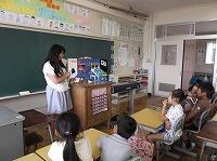 教室で本の読み聞かせをしています。