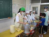 教室で授業のサポートをしたり、給食の配膳を手伝ったりしました。