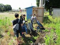 側溝にたまっていた泥は校庭の端の方に持っていきました。