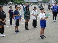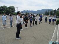 校長先生と児童代表としてスポーツ委員会の委員長と副委員長がお清めを行いました。