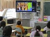 体育館には6年生と5年生、1~4年生は各教室で大型テレビで視聴するという形式で行いました。