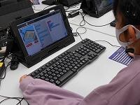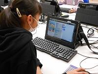 次に、パソコンを使って、ブロックのプログラミングを体験しました。「明るさが50%未満になったらライトをつけて、50%以上になったら消す」「お客さんが来たら自動ドアを開ける、いなくなって1秒たったら閉める」など電気をむだなく使うためのプログラミングに挑戦しました。専用のソフトで一人一人自分のペースで進めました。