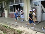 「見慣れない人が、入り口から侵入し、階段を上がって教室に入ってしまう」との設定で、教師の役割分担や児童の避難経路を確認しました。さらに、「お:おさない」「か:かけない」「し:しゃべらない」「も:もどらない」の再確認をしました。