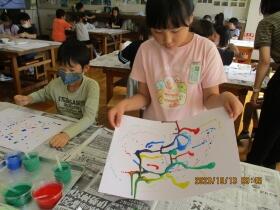 絵の具をたらした形から、それぞれの発想を大切に絵を描きました。