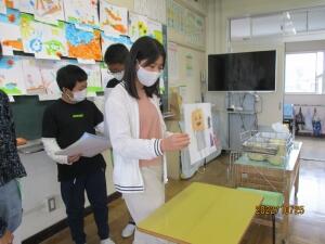 國學院短大生の5名が小学校の教育活動について学ぶため、五小に来ました。
