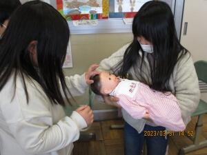 歯科検診や視力検査、聴力検査、ことばのテスト等を行い、最後に体育館で面談をしました。