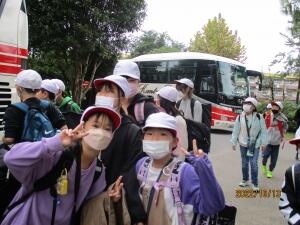 二日間の臨海自然教室の始まりに、どの児童も笑顔がこぼれていました。