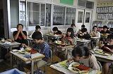 学校給食で牛肉(和牛)を使用することは希なので、新聞社やケーブルテレビなどが取材にきました。