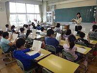年2回、教育委員会から指導主事の先生を招いて提案授業を行い、全教職員で授業について協議したり、指導を仰いだりして指導技術の向上を図っています。。