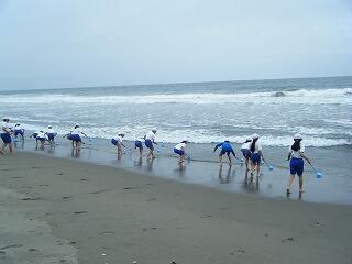 丁寧に、プールの床を磨きました。汗をたくさんかきながらがんばりました。