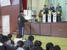 毎日の子どもの登校を見守ってくれている3人の交通指導員さんに来ていただき,「交通指導員さんに感謝する会」を開きました。