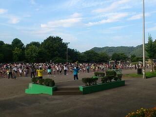 育成会ごとに並んで、みんな元気にラジオ体操第1と第2を行いました。