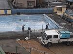 今日の夜から明日にかけて、雪が降る予報が出ている寒さの中、プールの改修工事が進んでいます。