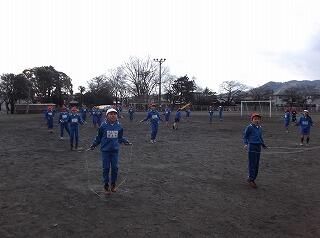 この冬一番の寒波がくるという天気予報が出ている訳ですが、そんな寒さを吹き飛ばす如く、ほどよくしめった校庭で、持久跳びと技能跳びの練習に励む5年生です。