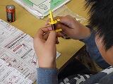 実験のためにエナメル線でコイルを作るために、集中してくるくる巻いています。
