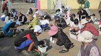 シニアクラブとの交流①パンジー植え付け
