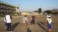 校庭球技クラブと五小学区のシニアクラブでクラブの時間、グランドゴルフの交流を