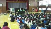 クラス代表作品が全校児童に紹介され、全校児童による投票に