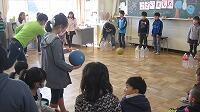 3年生はペットボトルボーリングです。 4年生はバランスゲームです。
