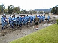 校庭や駐車場、学校に入る道路の土砂除去には「栃木農業高校ボランティア