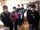 「毎日事故なく安全に登校できているのは交通指導員の皆さんのおかげです。また、毎朝あいさつしてくださるので、さわやかな気持ちで登校することができています。どうかお体衣に気をつけてお過ごしください。そしてこれからもよろしくお願いいたします。