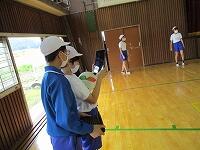 タブレットPCを活用して、チーム練習や試合の様子を動画で撮り、仲間の動きや声かけを確認しています。また、前の時間の様子を動画で振り返り、授業の目標を設定しています。